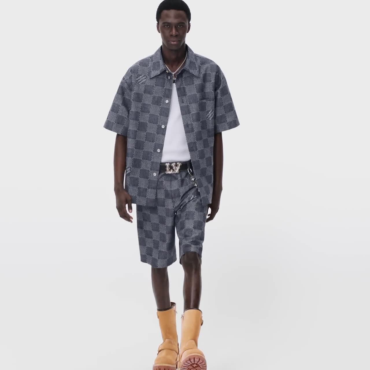 Damier Short-Sleeved Chambray Shirt