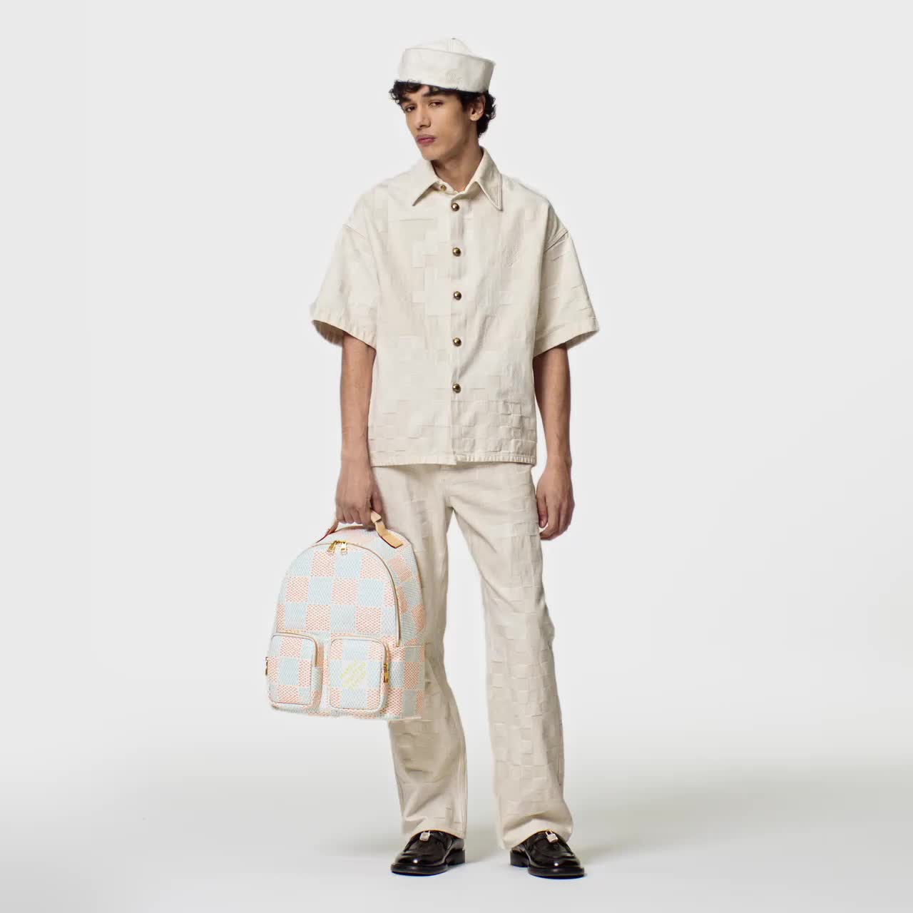 - Damoflage jacquard di seluruh permukaan, disertai ‘Marque L.Vuitton déposée’ signature