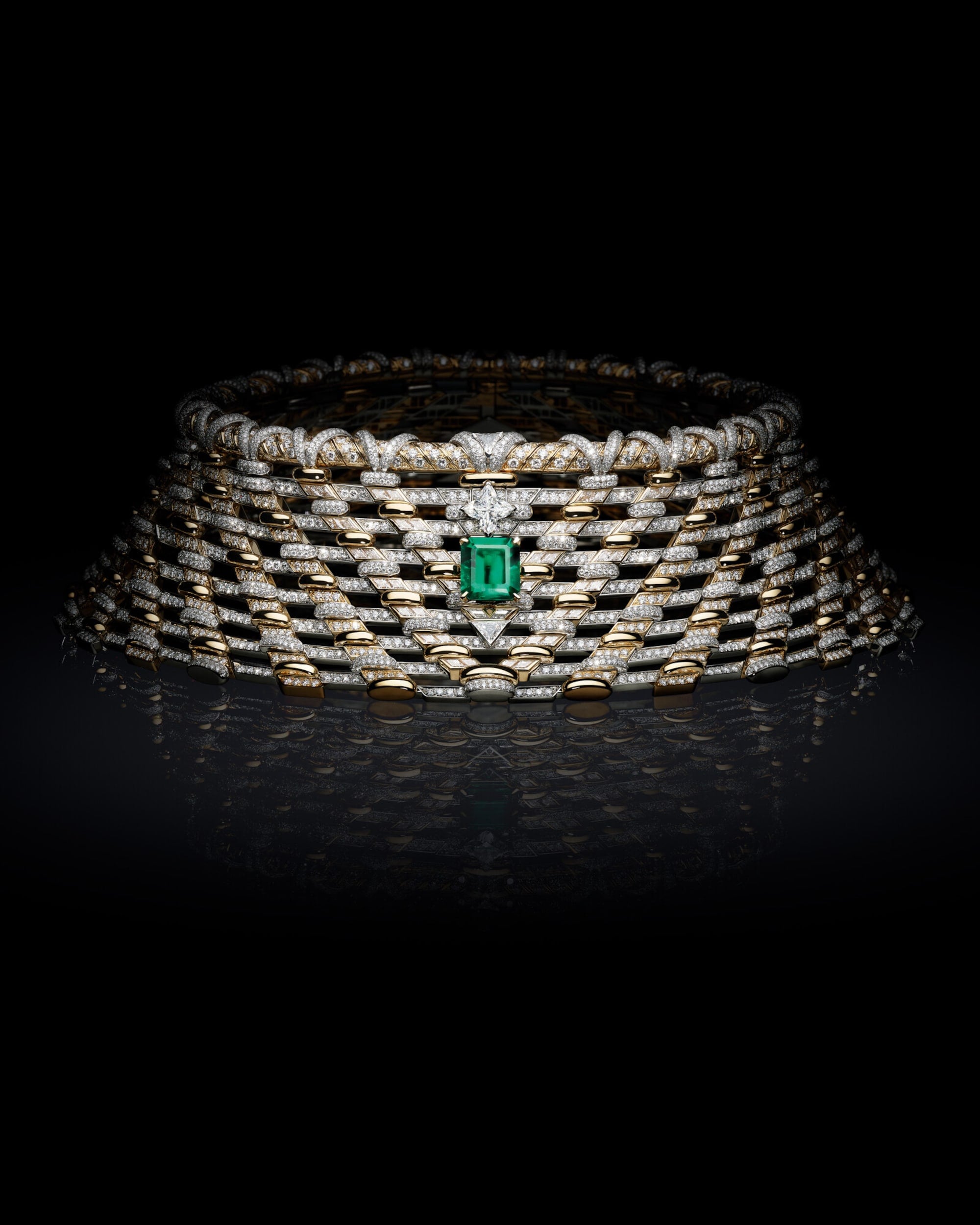 Séduction menampilkan kompleksitas unik, merayakan perkembangan tekstil dan keahlian ornamental pada periode tersebut. Detail presisi seperti bentuk V, cord-style fringing, dan corak Monogram Kite mengingatkan akan gaya historis Rumah Mode, menghasilkan salah satu koleksi perhiasan yang paling eksklusif — bertatahkan sebuah batu Zambian emerald 12,92 karat, membutuhkan waktu produksi selama 4.200 jam kerja.